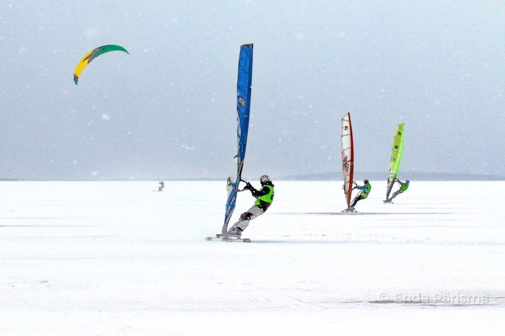 Kena talveilm meelitas talisurfarid teisel jõulupühal õue, muidugi võistlema. Kõige sobivamad sõidutingimused leidsime jälle kord Topult. Seal on jää paksus nüüd juba 25 cm ja segavat lumeuputust veel pole. Tuul oli täna rahulik, mistõttu võistlesime traditsioonilisel pikal distantsil (end. kursisõit).